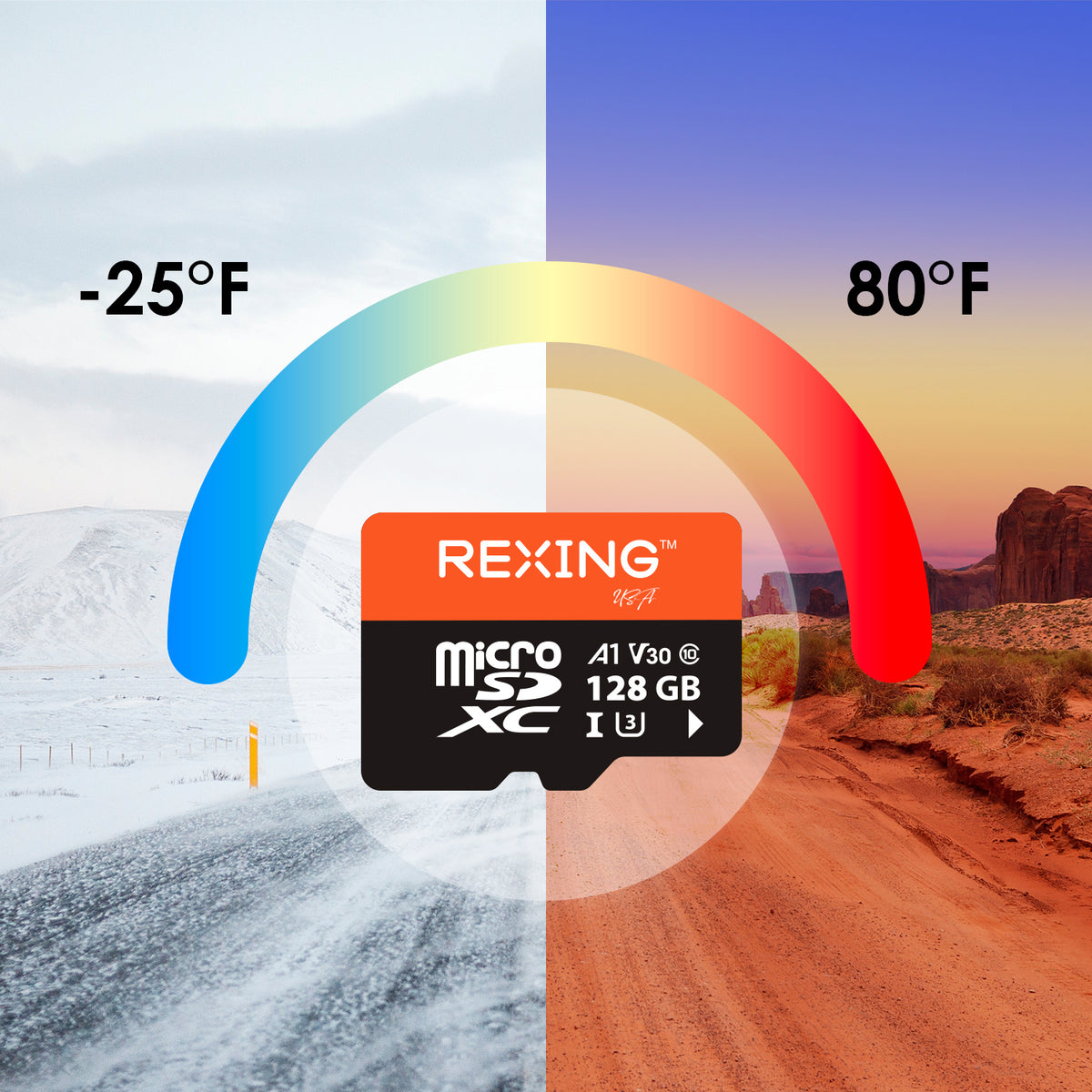 - Amplia compatibilidad : Ideal para una amplia gama de usos. Compatible con todas las cámaras Rexing y la mayoría de los dispositivos compatibles con tarjetas microSDXC. Ideal para usar con dispositivos móviles, tabletas, consolas de videojuegos, drones y más.