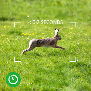 - TIEMPO DE DISPARO – Capture imágenes más rápido que 0,2 segundos después de detectar movimiento dentro del ángulo de detección de 120° de los sensores PIR frontales y laterales. El flash LED de visión nocturna infrarroja de 40 ilumina sujetos a una distancia de hasta 65 pies (20 metros) para producir una imagen clara tanto de día como de noche.