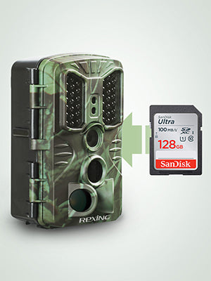 La cámara de rastreo con visión nocturna REXING H1 Blackhawk graba video y audio Full HD con una resolución de hasta 1920×1080 o toma fotos de hasta 16 megapíxeles. Incorpora grabación time-lapse para capturar imágenes de animales y el entorno durante un período de tiempo. Admite tarjetas SD estándar de hasta 128 GB. Captura imágenes en menos de 0,2 segundos tras detectar movimiento dentro del ángulo de detección de 120° de los sensores PIR frontal y lateral.