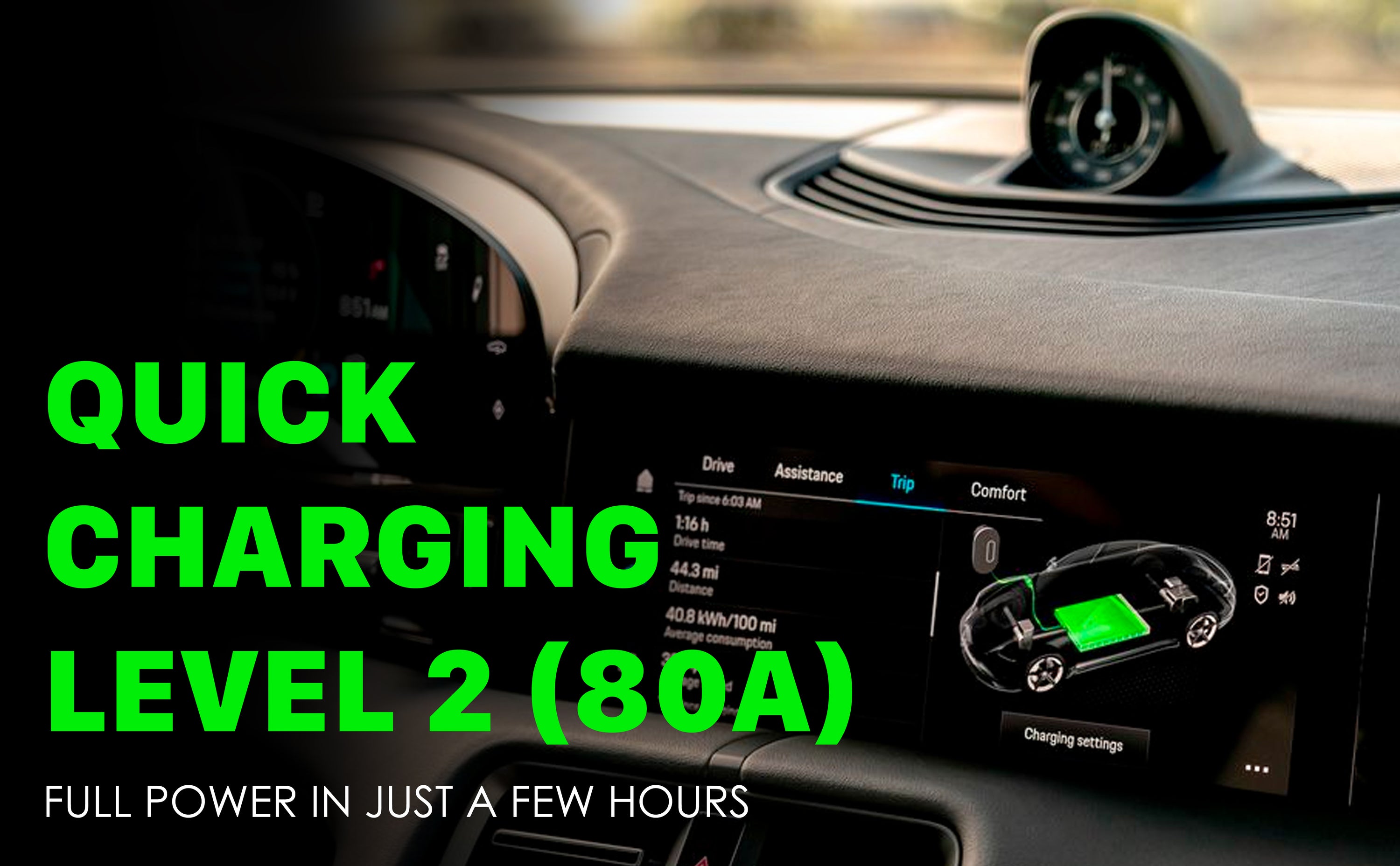- Rápido y eficiente – Con velocidades de carga de hasta 20 kW, voltaje nominal de 250 V y amperaje de hasta 80 A, puedes cargar completamente tu vehículo eléctrico en pocas horas. O bien, suministrar rápidamente la energía suficiente para llegar a tu destino en cuestión de minutos.