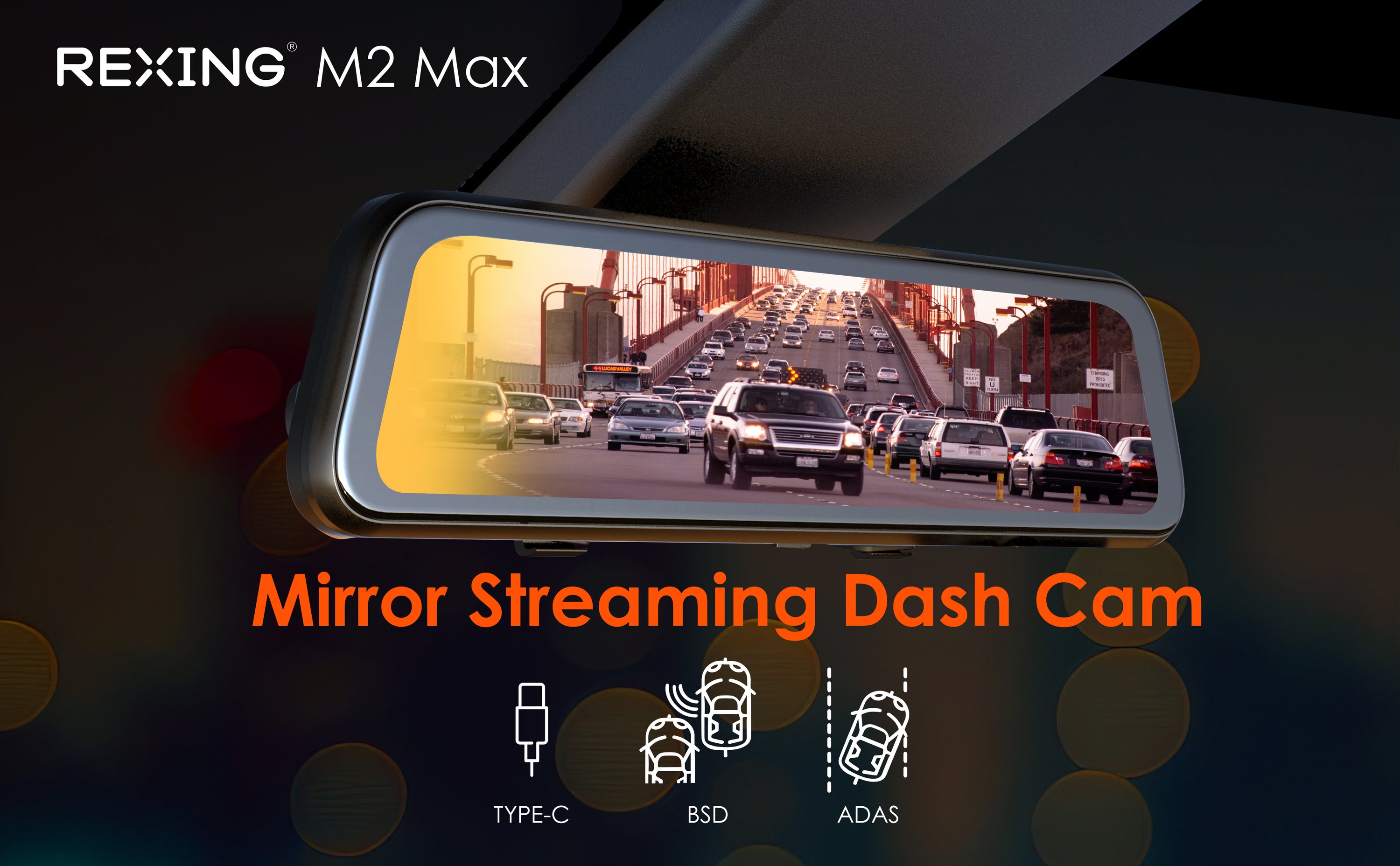 RexingUSA M2 MAX – Cámara de tablero con espejo de 2 canales y pantalla táctil IPS de 12", 4K + 1080p, Wi-Fi, GPS, ADAS, grabación en bucle, cámara de reversa, modo de estacionamiento y detección de colisiones