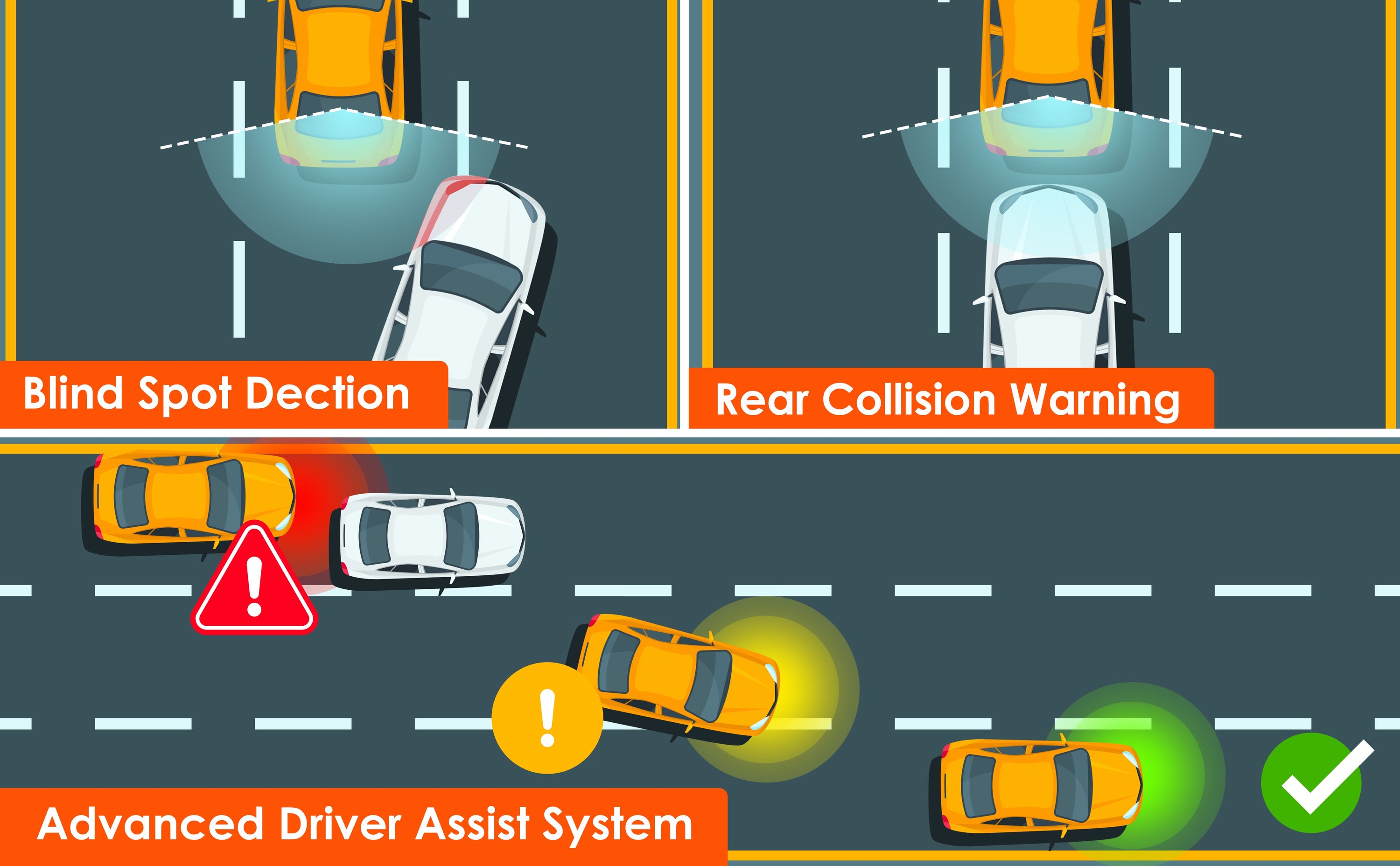 - Sistema avanzado de asistencia al conductor: advertencia de colisión trasera y detección de punto ciego