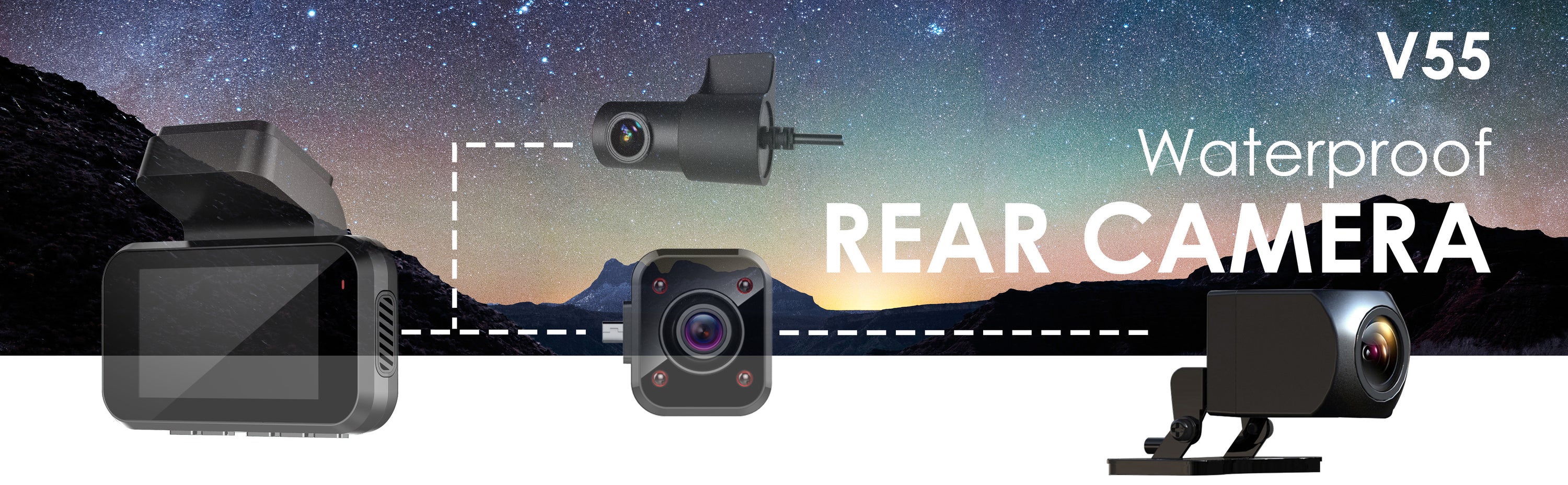 - ARRIÈRE VUE ARRIÈRE ET ÉTANCHE – Améliorez la caméra avant de votre V55 pour bénéficier d'un enregistrement de la vue arrière. La vue arrière est idéale pour surveiller ce qui se passe derrière vous pendant la conduite.