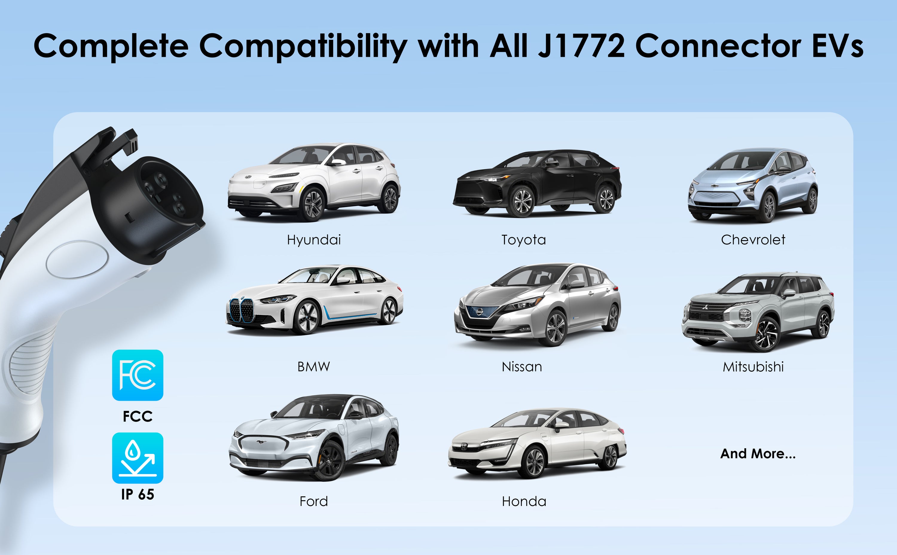 - Universal Compatibility – Harnessing the standard J1772 charging protocol, this charger caters to all electric vehicles and plug-in hybrids, ensuring flexible and convenient charging solutions for your whole fleet regardless of make or model.