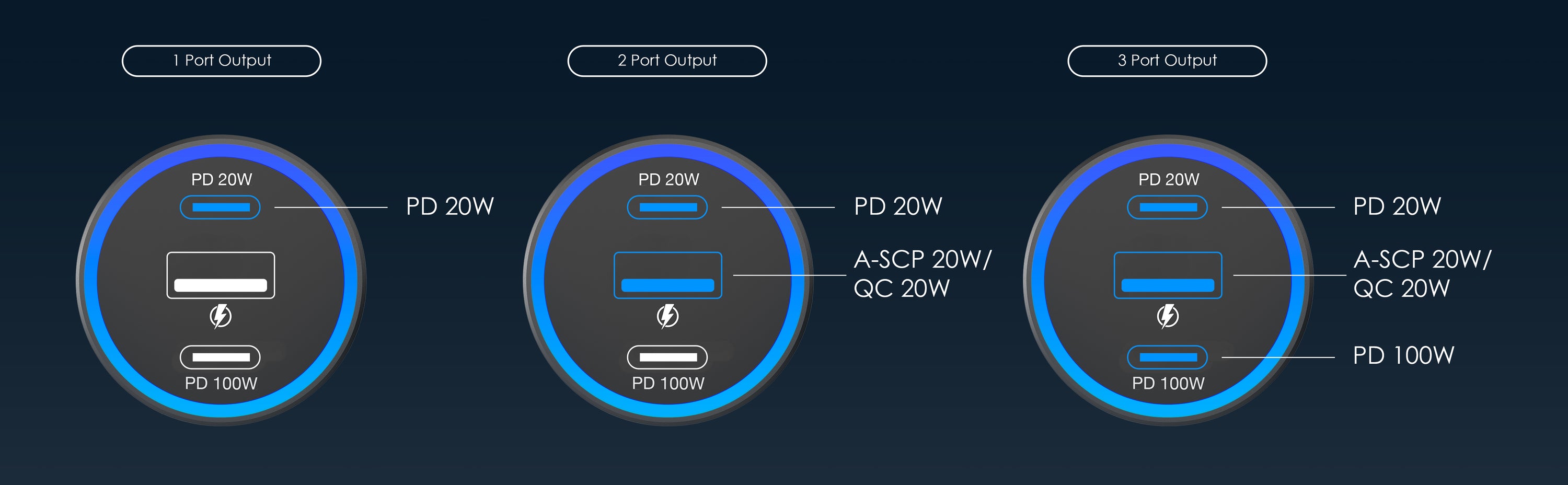PD100W | PD18W & PD20W Fast Charging | LED Indicator | Triple Port | Compatible with iPhone, Galaxy, iPad, MacBook | Overcharge Protection | 100W USB-C | Cable Included