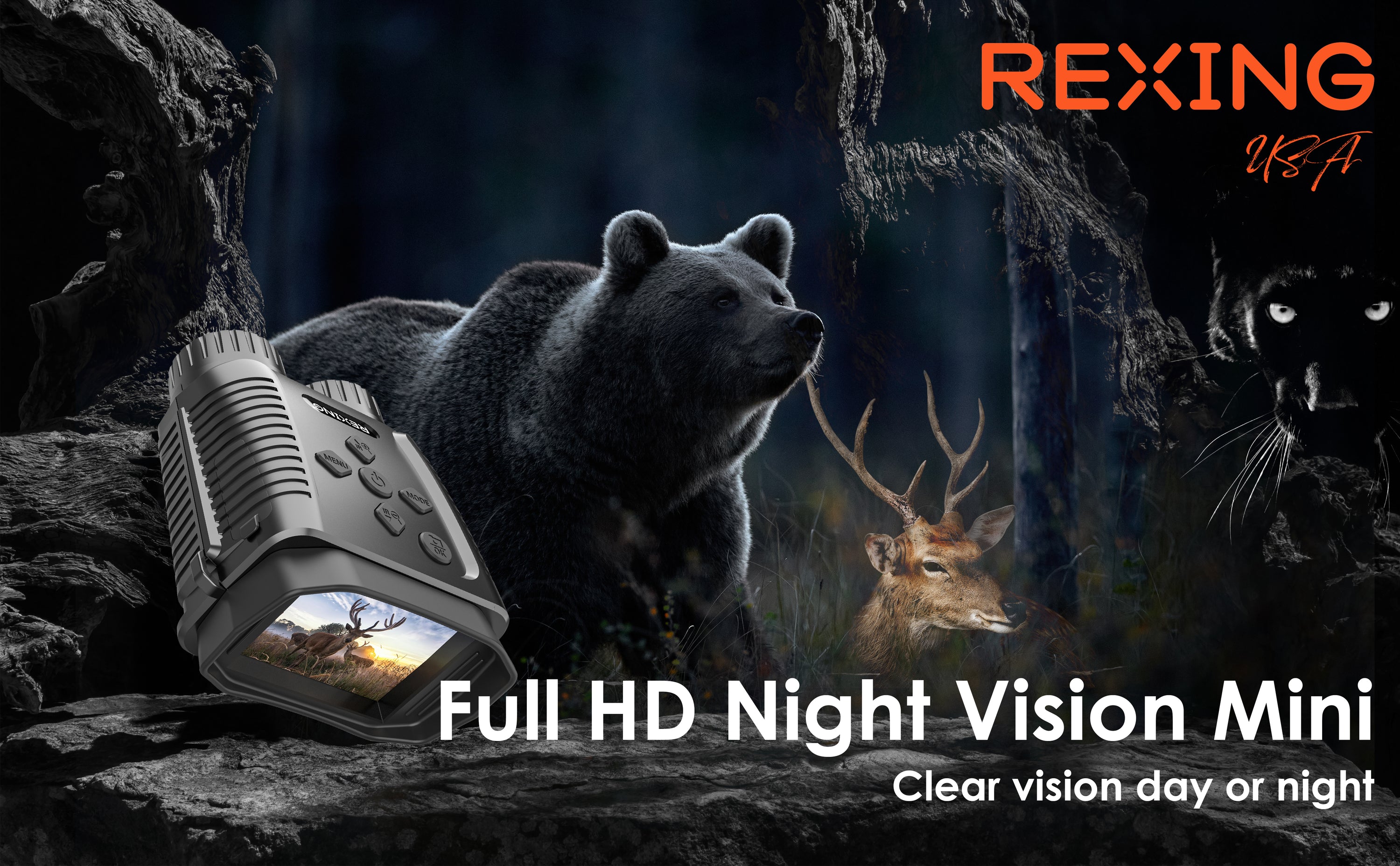 REXING B1 Mini – 1080p Night Vision Mini Digital Binoculars – Travel Infrared Binoculars Save Image And Video w/ Viewing Screen, High-Tech Hunting Gear