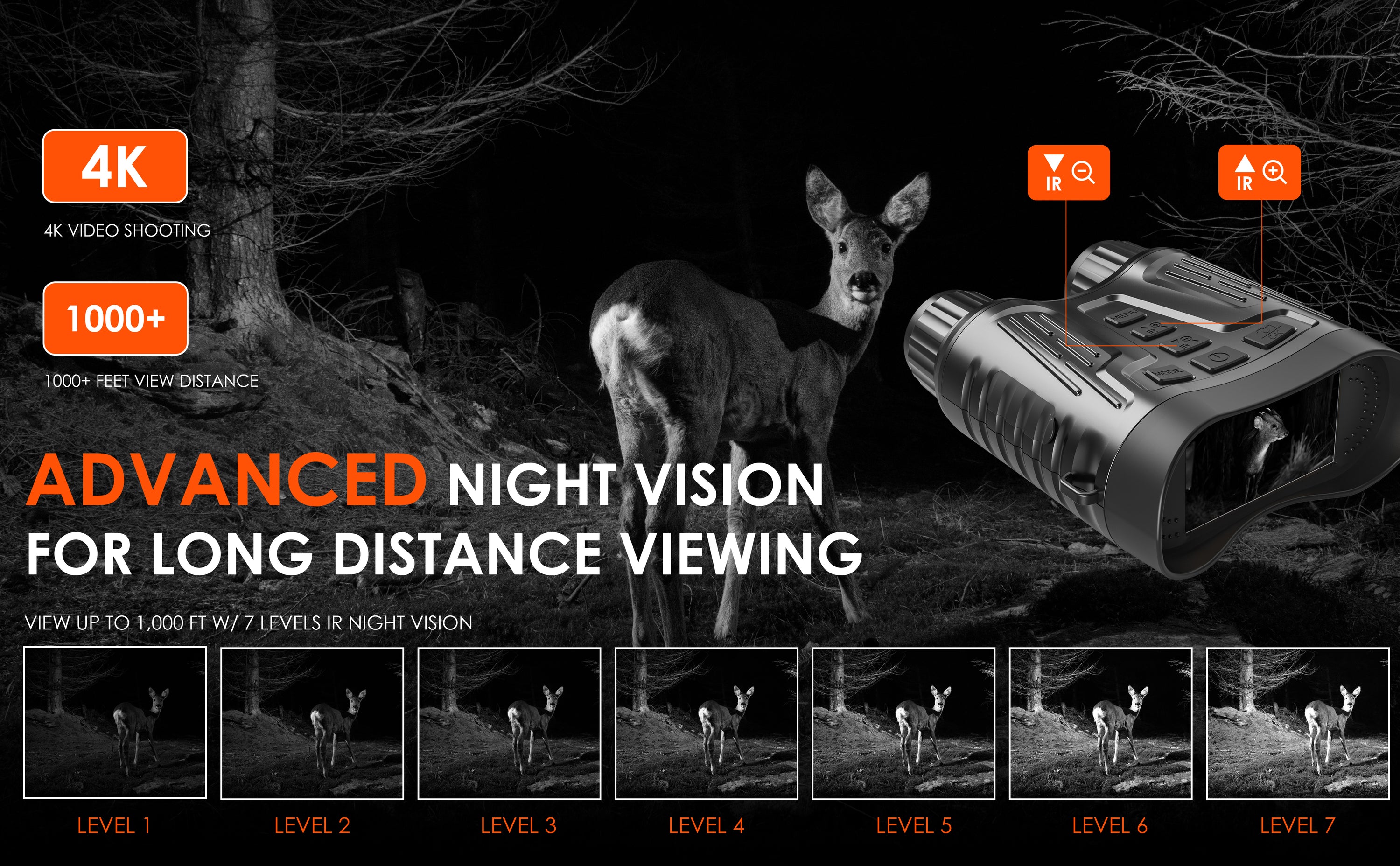 - IR Night Vision - Advanced infrared night vision works up to 984 ft away so you can see nature up close even in complete darkness.