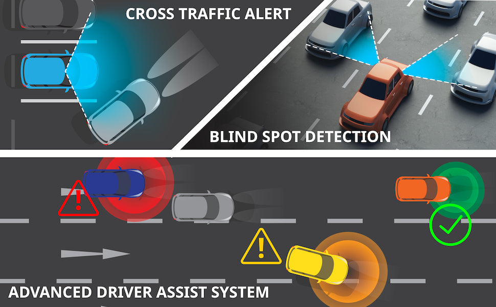 Displays the real-time traffic situation on the road. Provides 3 times wider view than the traditional rearview.