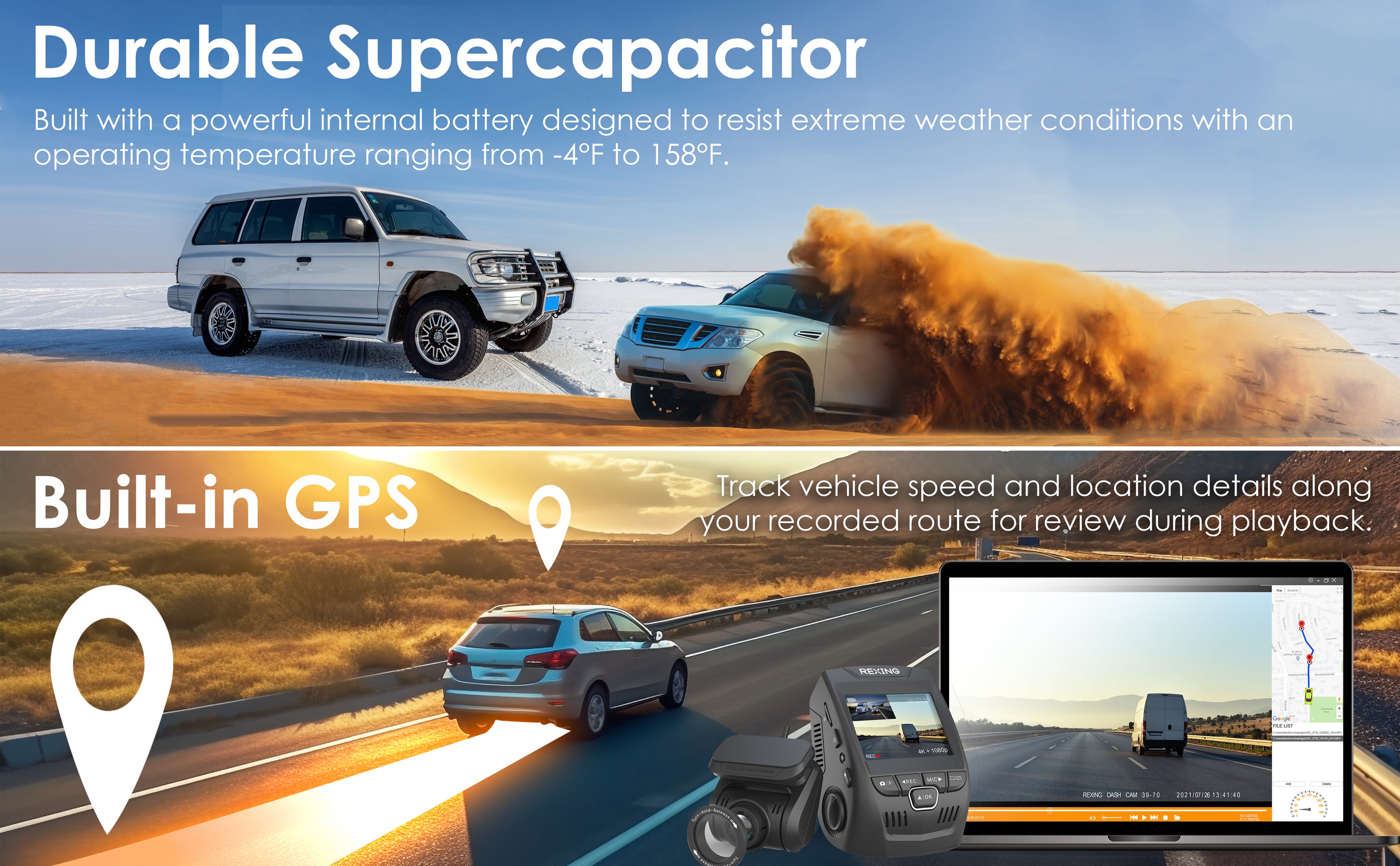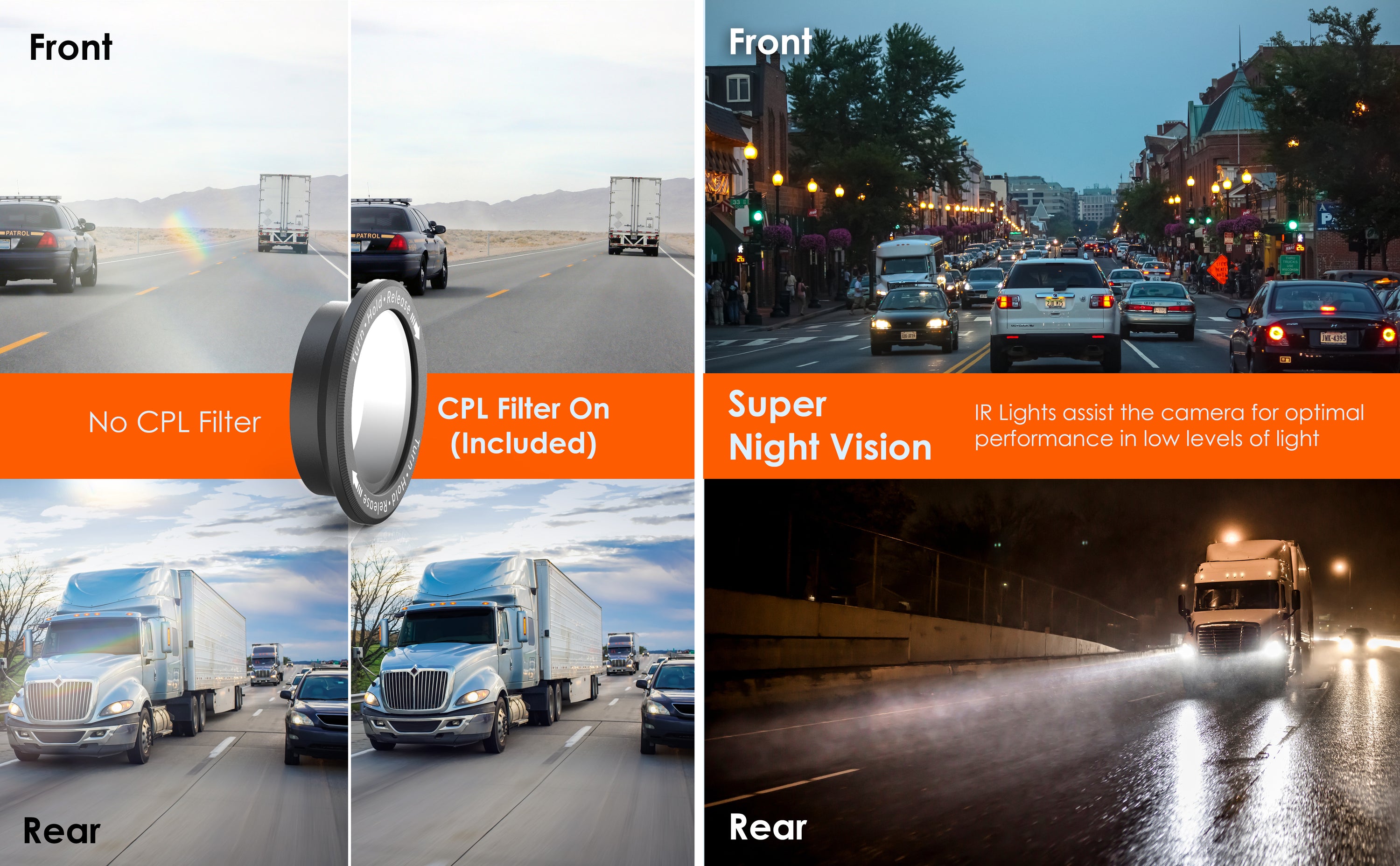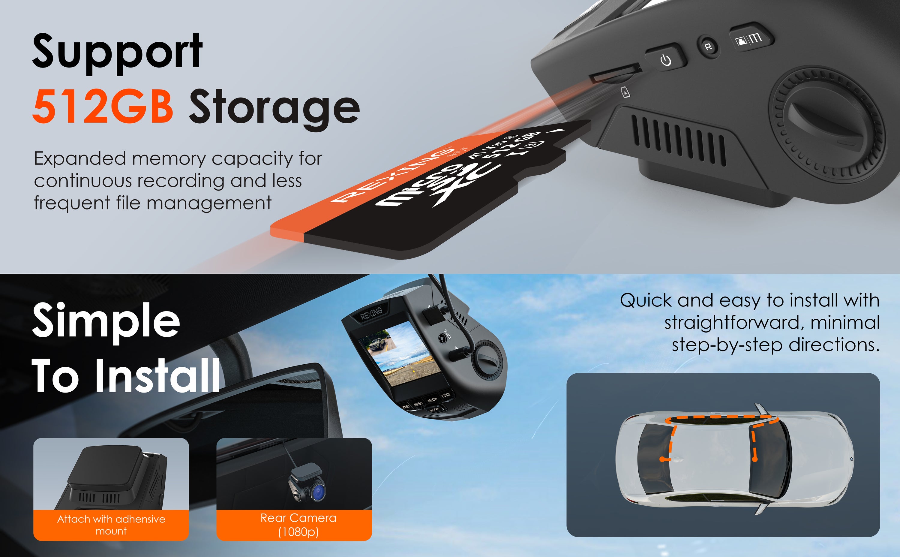 Upgraded 512GB Support | Front 2160p + Rear 1080p | 170° Wide Angle | G-Sensor | WDR | Loop Recording | Parking Monitor