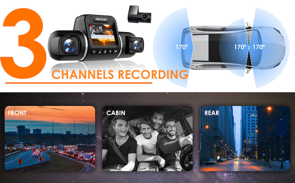 - Real HD 1080p Resolution (Front + Cabin + Rear)
