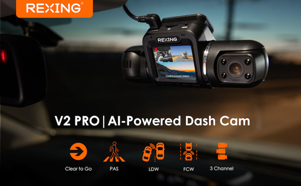 - Rexing V2 Pro AI Dash Cam + Rear camera