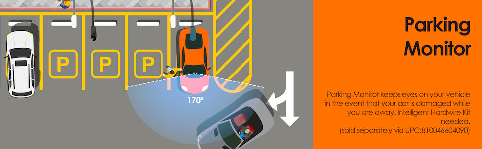 Automatically switch the dash camera to Parking Surveillance Mode and when it detects Vibration / Motion the camera will start recording instantly.