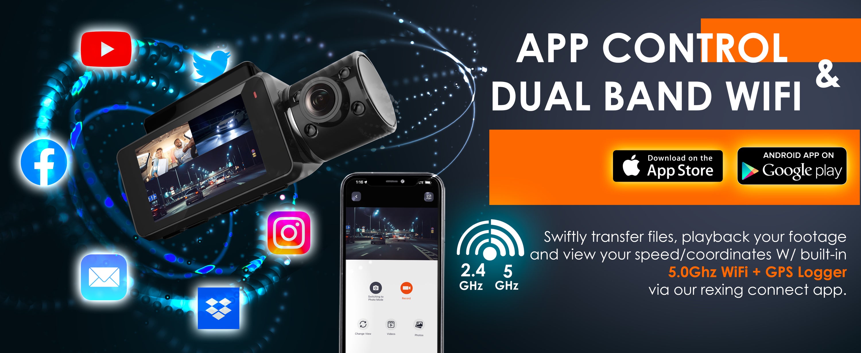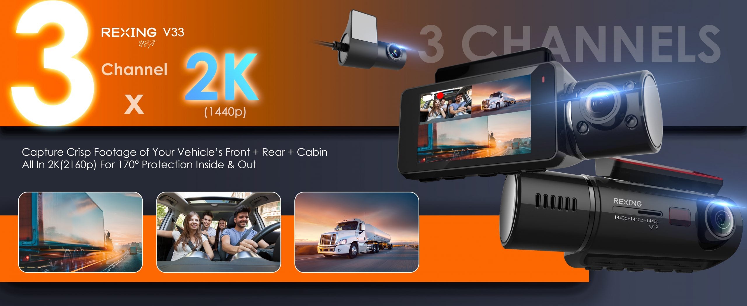 Rexing V33 3 Channel 1440p+1440p+1440p Front, Cabin and Rear Camera Dashcam with Built-in Wi-Fi & GPS