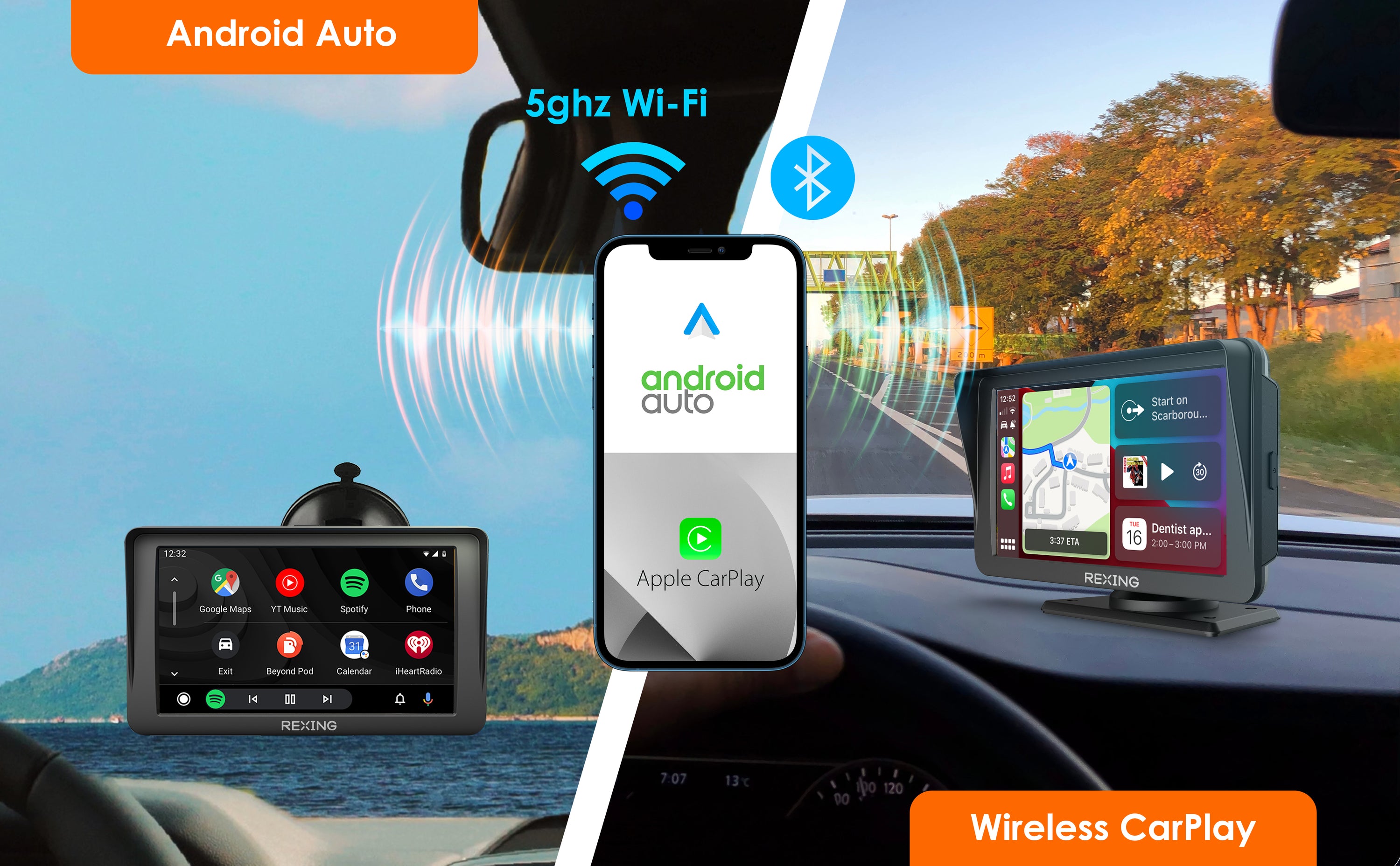 7″ IPS Touch Screen | Apple Carplay | Android Auto | FM Transmitter | Dual Band WiFi |Aux Port | GPS Navigation | Voice Control | Spotify |Phone Calls | Phone Mirroring